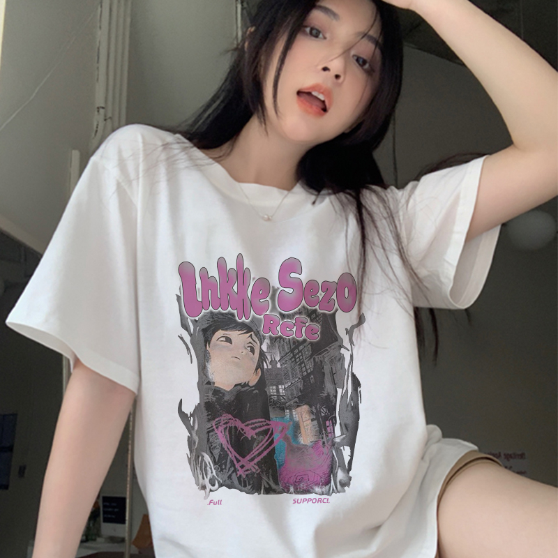 Detail Print T-shirt Kaos Lengan Pendek Vintage BlackPink Baju Wanita Oversize Korean Style