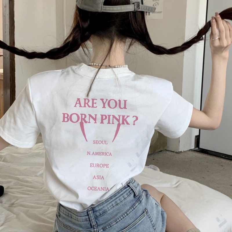 Detail Print T-shirt Kaos Lengan Pendek BlackPink Baju Wanita Oversize Korean Style