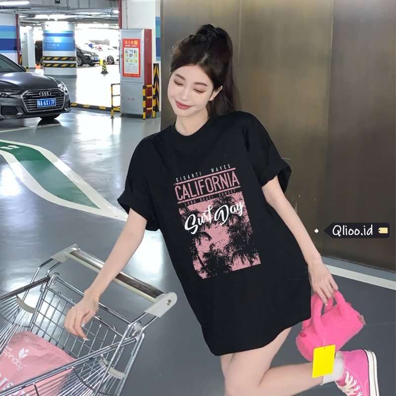 Detail Print T-shirt Kaos Lengan Pendek Vintage Pink ShutDown Baju Wanita Oversize Korean Style