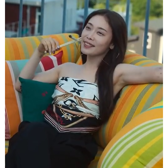 Detail Printed Scarf Top Sleeveless Square Neck Tank Top Multi Style Assymetric Fashion Wanita The Glory Lee Sa ra Outfit Sara Film Netflix