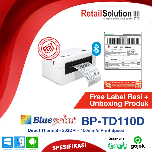 Printer Barcode Label Thermal Bluetooth - Blueprint TD110D / TD-110DPrinter Barcode Label Thermal Bluetooth - Blueprint TD110D / TD-110DPrinter Barcode Label Thermal Bluetooth - Blueprint TD110D / TD-110DPrinter Barcode Label Thermal Bluetooth - Blueprint TD110D / TD-110DPrinter Barcode Label Thermal Bluetooth - Blueprint TD110D / TD-110D
