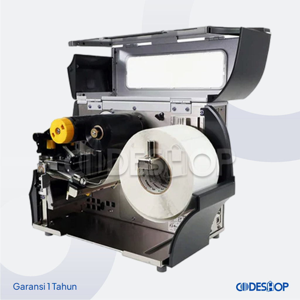 Adapun spesifikasinya : Metode Cetak : memakai ribbon (Thermal Transfer) dan label cetak stiker (Direct Thermal) Resolusi : 300 dpi (16 dots/mm) Kecepatan Cetak : 14 ips (356 mm/s) Type Sensor : Transmissive Sensor & Adjusable Reflective Sensor Memory : 64 FLASH ROM & 64 SDRAM Interface : USB + SERIAL + LAN Diameter Luar Ribbon : Max 2,7' (68 mm) & jenis Ribbon Face Out (FO) Panjang Ribbon : Max 300 Meter - 450 M dengan Core 1" (25,4 mm) Lebar Label : Min 25,4 mm & Max 110 mm dengan Core 1" & 1,5 " Lebar Cetakan Label : Min 25,4 mm & Max 104 mm Type Barcode : 1 Dimensi & 2 Dimensi Bahasa pemograman : EPL / ZPL firmware emulates Driver : Zebra Designer at Official Web Zebra
