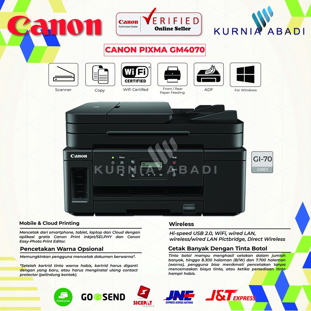 PIXMA GM4070 Printer Nirkabel dengan Wadah Tinta Isi Ulang dan ADF untuk Pencetakan Monokrom Volume Tinggi. Didesain untuk pencetakan monokrom volume tinggi dengan biaya pemeliharaan yang ringan. Printer ini juga memiliki opsi untuk pencetakan dokumen berwarna.