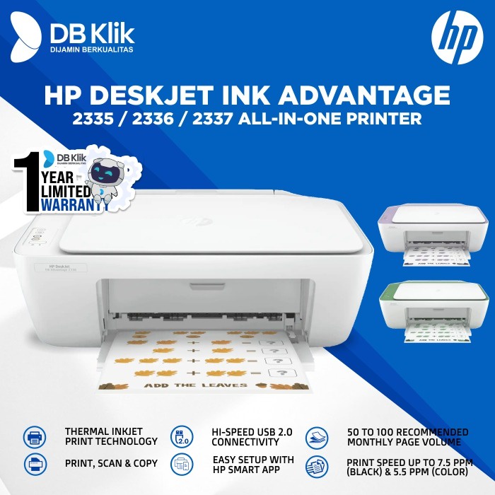 Connectivity: 1 Hi-Speed USB 2.0 Wireless capability: No Max output capacity: Up to 25 sheets Number of print cartridges: 2 (1 each black, tri-color) Replacement cartridges: EMEA: HP 653 Tri-color Original Ink Advantage Cartridge (~200 pages yield) 3YM74AE; HP 653 Black Original Ink Advantage Cartridge (~360 pages yield) 3YM75AE. APJ: HP 682 Tri-color Original Ink Advantage Cartridge (~150 pages yield) 3YM76AA; HP 682 Black Original Ink Advantage Cartridge (~480 pages yield) 3YM77AA. LAR: HP 667 Tri-color Original Ink Advantage Cartridge (~100 pages yield) 3YM78AL; HP 667 Black Original Ink Advantage Cartridge (~120 pages yield) 3YM79AL; HP 667XL Black High-Yield Original Ink Advantage Cartridge (~480 pages yield) 3YM81AL; HP 667XL Tri-Color High-Yield Original Ink Advantage Cartridge (~330 pages yield) 3YM80AL; HP 667 Tri-color Original Ink Advantage Cartridge (~100 pages yield) 3YM78AB; Dimension: 424.97 x 304.32 x 151.08 mm Support media size : A4; B5; A6; DL envelope Printer Technology : HP Thermal Inkjet Print Speed BW : up to 7.5 ppm (black Print Speed Color : up to 5.5 ppm (color) Paper Handling : - Input Tray : 60-sheet input tray - Output Tray : 25-sheet output tray - Media Size : A4; B5; A6; DL envelope Memory : Integrated memory Compatible Operating System: Windows 10, 7