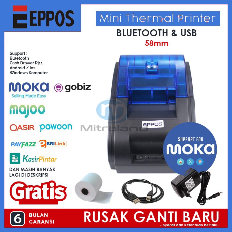Detail Printer Thermal EPPOS PLUS 58mm EP58PLUS- USB BLUETOOTH Multi Device