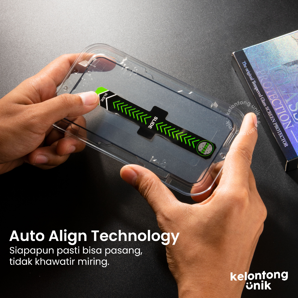 Isi: - 1 tempered glass dengan cetakan anti gagal - 1 professional cleaning kit (wet wipes, electrostatic dust-moving sticker, dry wipes)