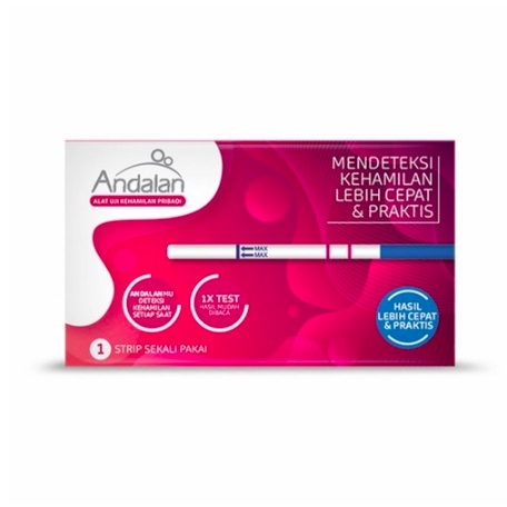 Andalan Strip Uji Kehamilan adalah yang paling dicari para wanita yang sedang telat datang bulan. Andalan Strip Uji Kehamilan dapat mendeteksi kehamilan lebih cepat dan akurat. Hasil dapat diperoleh dalam waktu 1 sampai 3 menit. Mempunyai keakuratan 99.9% dan tingkat kepekaan hingga 25mlU hCG/ml urine.