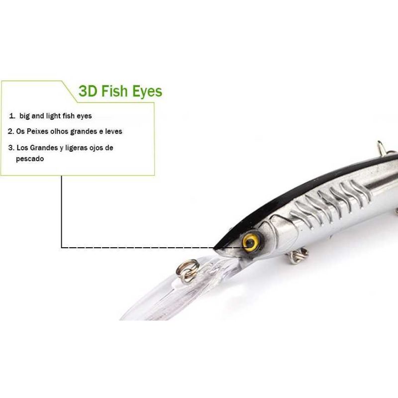 Badan umpan didesain memiliki 3 kail pancing yang tajam, memudahkan Anda untuk menangkap ikan dari segala sudut gerak ikan.