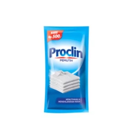 Proclin kemasan sachet 25ml adalah pemutih dan penghilang noda untuk pakaian yang berwarna putih. Produk ini memiliki formula khusus untuk pakaian bersih bersinar juga dapat membuat pakaian bebas dari bakteri dan kuman