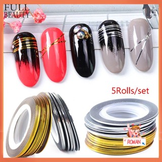 R-flower 5roll/set Stiker Pita Nail Art Striping Line Hot Glitter Gold Silver