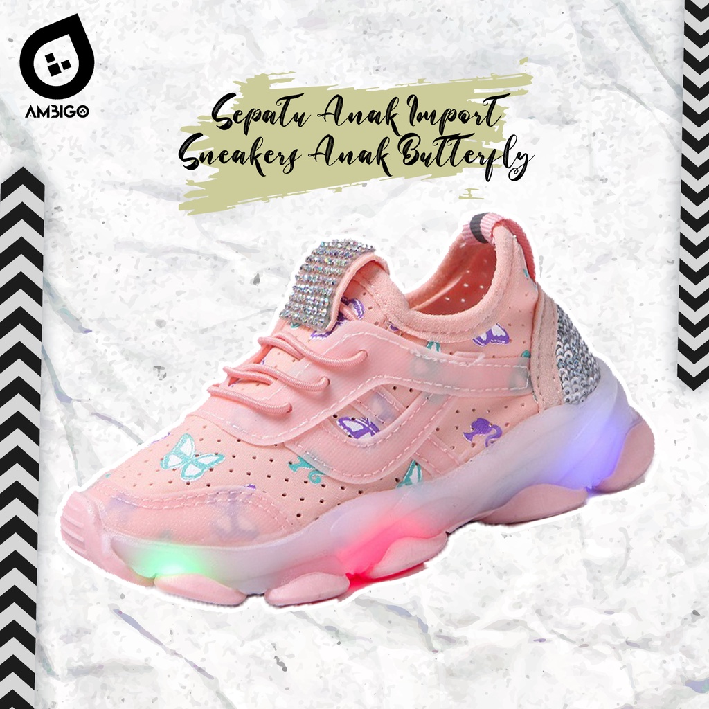 Sepatu Anak Laki Laki - Sepatu Anak Perempuan MOTIF Butterfly 012 LED Sepatu Sport Anak Casual Import