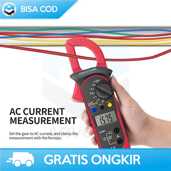 Overview of ANENG Digital Multimeter Voltage Tester Clamp - ST201 Digital Multimeter dapat digunakan untuk mengukur arus listrik yang mengaliri suatu benda. Multimeter ini dilengkapi dengan LCD dan hadir dengan design yang ringan dan kecil sehingga dapat Anda bawa kemana saja.