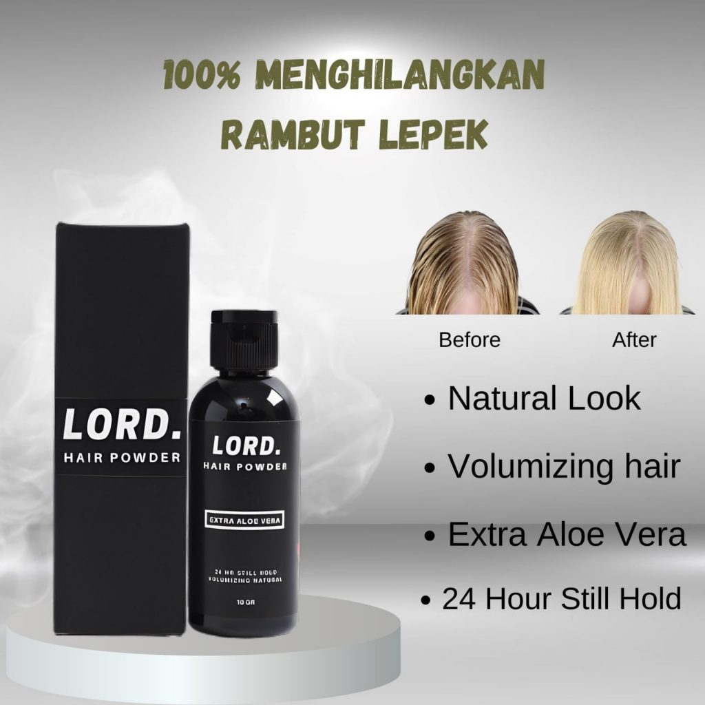 #1ST HAIR POWDER PALING WANGI Yap, dengan Aroma dari Inspired Parfume AQUA DI GIO ini menjadikan Lord Hair Powder tidak hanya membuat rambut lebih Rapi dan Bervolume Natural tapi sebagai Pewangi tambahan rambut sehingga rambut tetap wangi sepanjang hari. Mengandung Ekstrak Aloe Vera yang dapat mengatasi ketombe pada kulit kepala dan memperkuat akar rambut sehingga rambut lebih sehat dan tidak bikin rontok pastinya.
