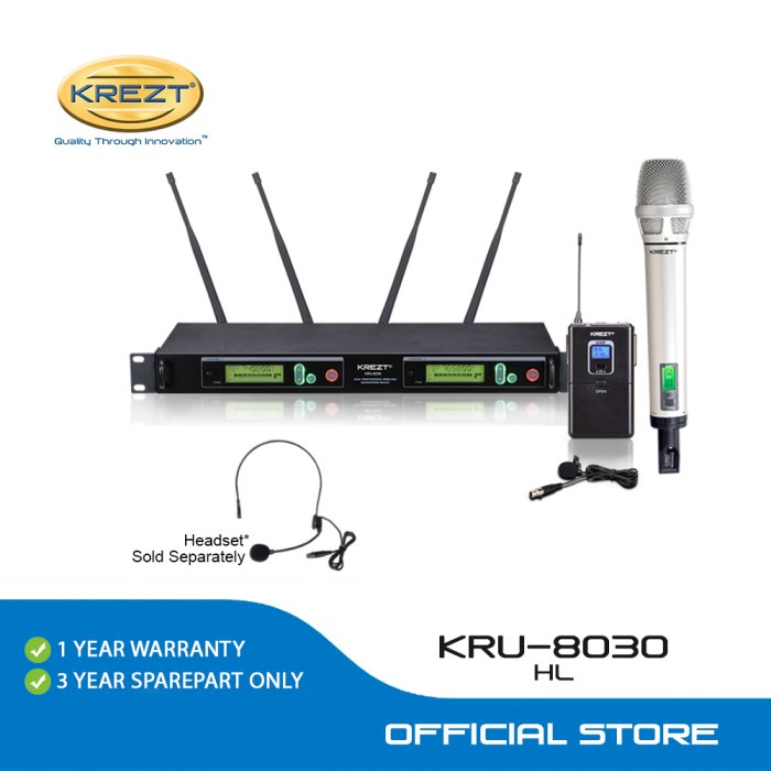HL - 1x Receiver - 1x Handheld Microphone - 1x Bodypack trasmitter + Mic Clip On - 4x Antena Receiver - 1x Kabel jack to jack - 1x Adaptor - 1x Buku Petunjuk Penggunaan - 1x Kartu Garansi
