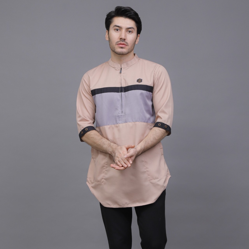 Fashion Muslim > Pakaian Muslim Pria > Atasan > PROGRESS MAN Baju Muslim Pria Dewasa Premium Kurta Koko Cowok Original Lengan Tiga Perempat kurta Pakistan Terbaru Lebaran 2023 Warna COKSU