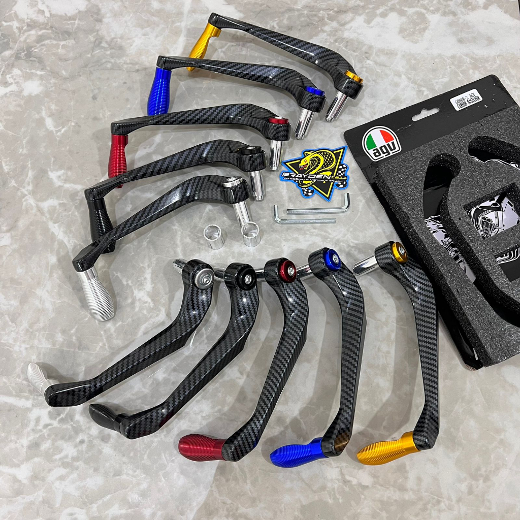 MEREK AGV KUALITAS JOSS WARNA CARBON KILAP MENGKILAP NGAB UNIVERSAL COCOK DI SEMUA MOTOR COCOK DI SMUA STANG STANG ORI ATAU VARIASI ATAU PADBAR BISA PAKAI HRGA SET KANAN KIRI TINGGAL PASANG