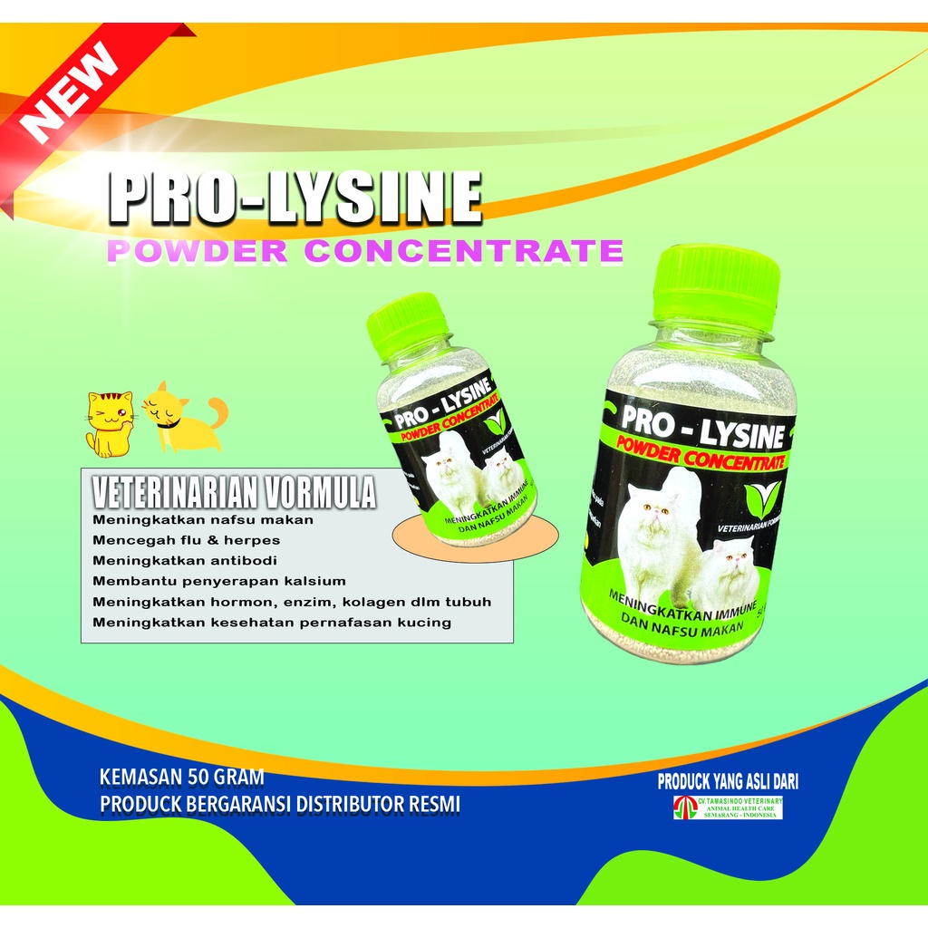 Prolysine Cat Pro Lysine Cat - Vitamin penggemuk Kucing Peningkat Nafsu Makan dan ImunPRO-LYSINE CAT (Meningkatkan imun & nafsu makan) #TokoDS Isi : 50gr Cara pakai : Kucing kecil 1/2 sdt (1g) Kucing dewasa 1 sdt (2g) Fungsi : Meningkatkan nafsu makan Mencegah flu & herpes Meningkatkan antibodi Membantu penyerapan kalsium Meningkatkan hormon, enzim, kolagen dlm tubuh Meningkatkan kesehatan pernafasan kucing Sebaik-baiknya penggunaan obat adalah yang diawali Bismillahirrohmanirrohim. KOMPOSISI, INDIKASI, CARA PEMAKAIAN DAN ANJURAN ADA DIKEMASAN, SILAHKAN DIBACA SEBELUM PENGGUNAAN !!!! EXPIRED SELALU UPDATE YA >>>>> Toko DS menjual aneka peralatan dan perlengkapan HEWAN. Silahkan lihat - lihat etalase kami. Untuk menghemat ongkos kirim, silahkan masukan keranjang terlebih dahulu barang yang diinginkan. jika sudah semua, baru kalian checkout alias bayar. untuk ongkos kirim nanti akan jadi 1 menyesuaikan berat.