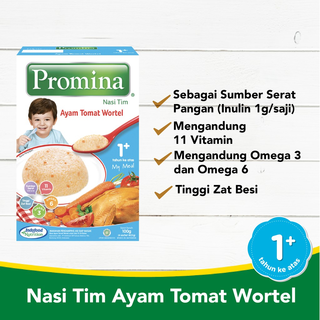 Makanan padat untuk bayi usia 12 bulan ke atas. Diformulasikan khusus menyerupai nasi tim buatan sendiri. Keunggulan : - Menstimulasi pertumbuhan gigi - Melatih rasa - Umur simpan 18 bulan