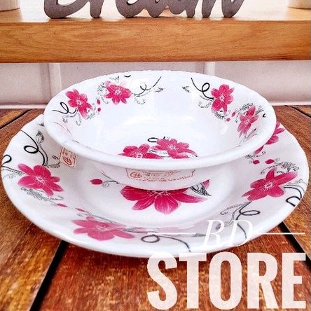 PROMO 1.PCS PIRING MAKAN & 1.PCS MANGKOK SAYUR MOTIF ROSE MELAMINE