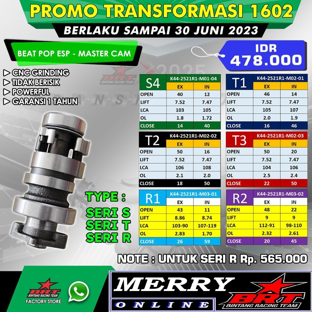 Detail Promo 1602 Master Cam BRT Noken as Beat Esp Street Pop Scoopy ESP K44 S8 T1 T3 T10 R1 R2 ADS