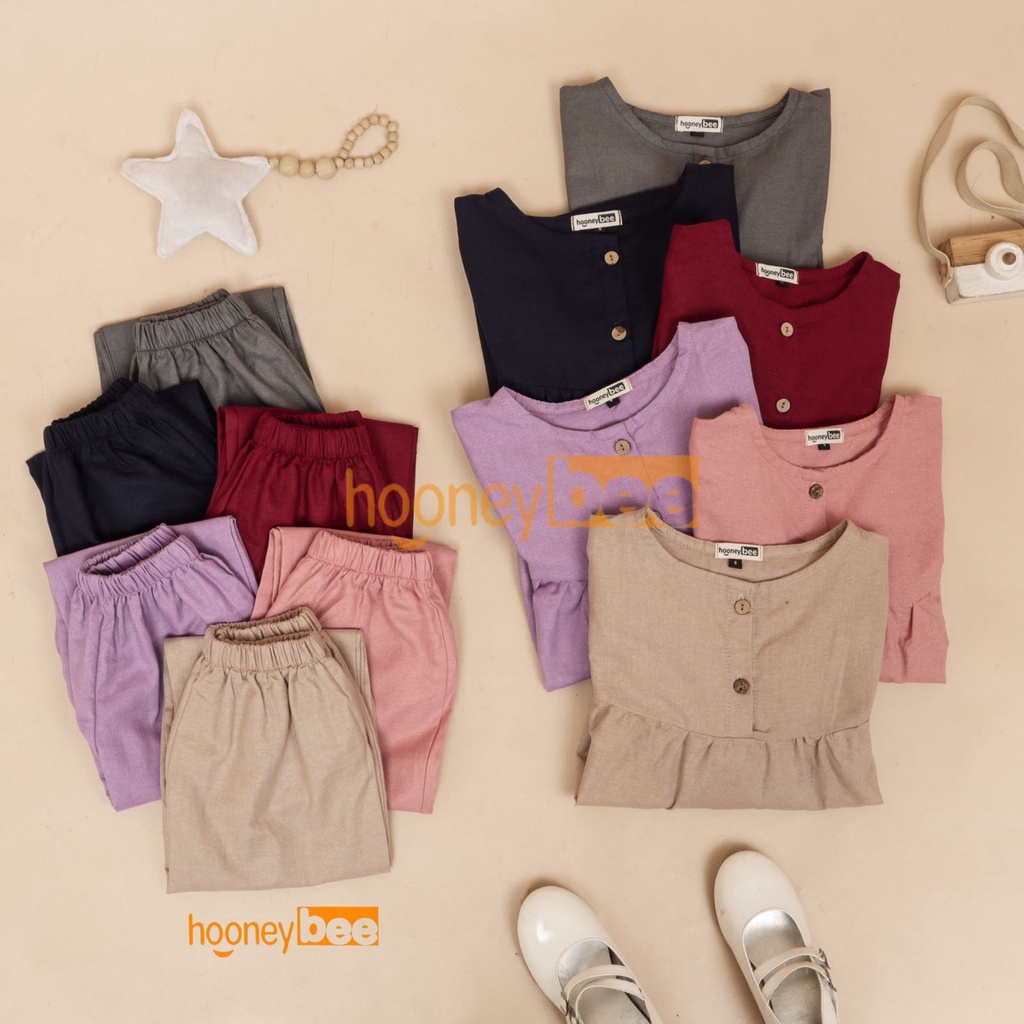 PROMO 7.7 Smilee Setelan Khanza 2-10 Tahun Setelan Linen Panjang Raya Anak Perempuan / Tunik Set Lebaran / Honeybee Pakaian Muslim Anak baju lebaran anak