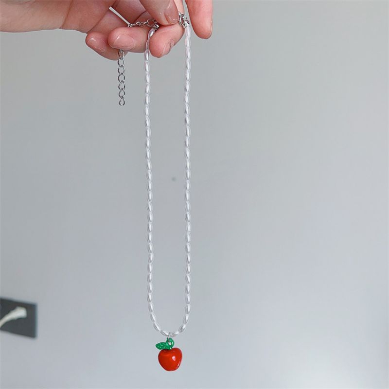 NEW !! Kalung Wanita mutiara dengan bandul buah yang unik dan lucu Simple dan cantik di pakai nya ❤ Sangat cocok di pakai sehari-hari Bentuk mutiara panjang unik banget ya kak 😍 Realpict , Dijamin!!