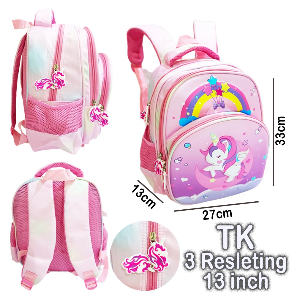 Detail PROMO 10.10 Ransel Import Tas Anak Sekolah Perempuan TK Gambar Kuda Ajaib dan Putri Cantik LILAC 3Resleting dan PIRANG 3D 2Resleting ( Pilihan Varian )