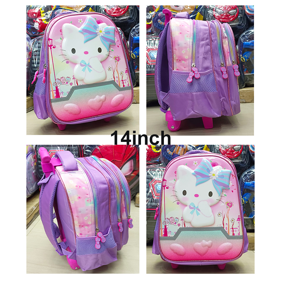 Fashion Bayi & Anak > Tas Anak Perempuan > Tas Troli > PROMO 7.7 TROLLEY DORONG UKURAN SEDANG SD 14inch TAS ANAK SEKOLAH BARU GAMBAR KUCING PITA ANAK PEREMPUAN COOL TIMBUL 3 RESLETING IMPORT ( UKURAN SEDANG 14inch )