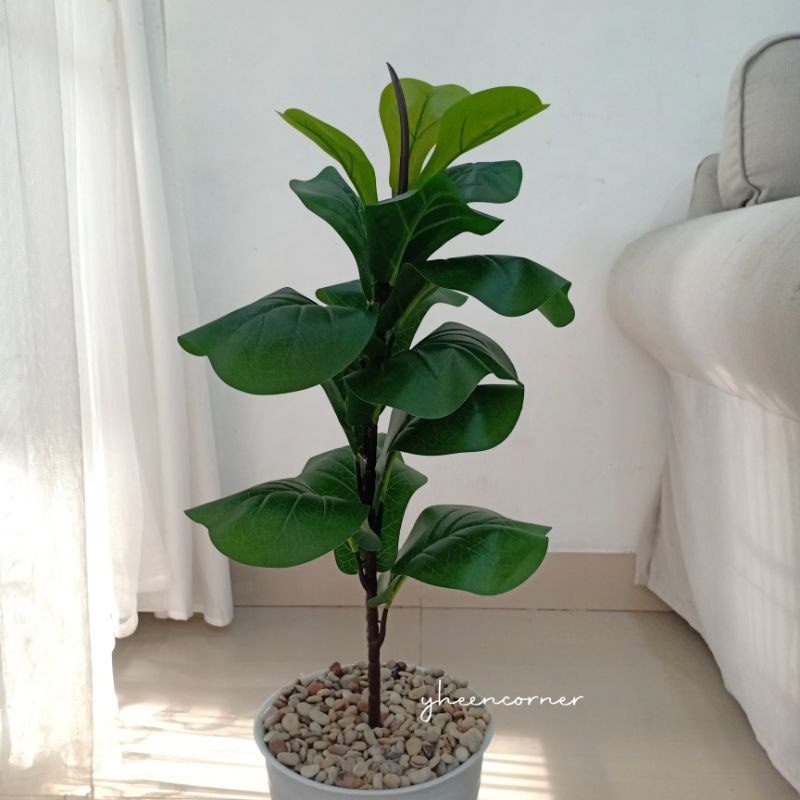 - FIDDLE LEAF TREE(KETAPANG BIOLA) 15 daun diameter daun 7cm, 10cm, 14cm tinggi 65cm