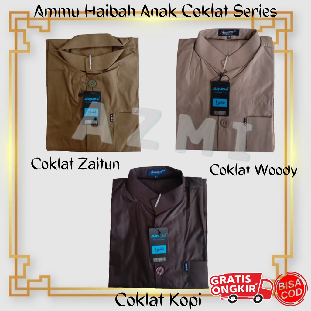Detail Promo Baju Koko Ammu Kerah Haibah Anak Ukuran Size 11-14 Coklat Series Termurah