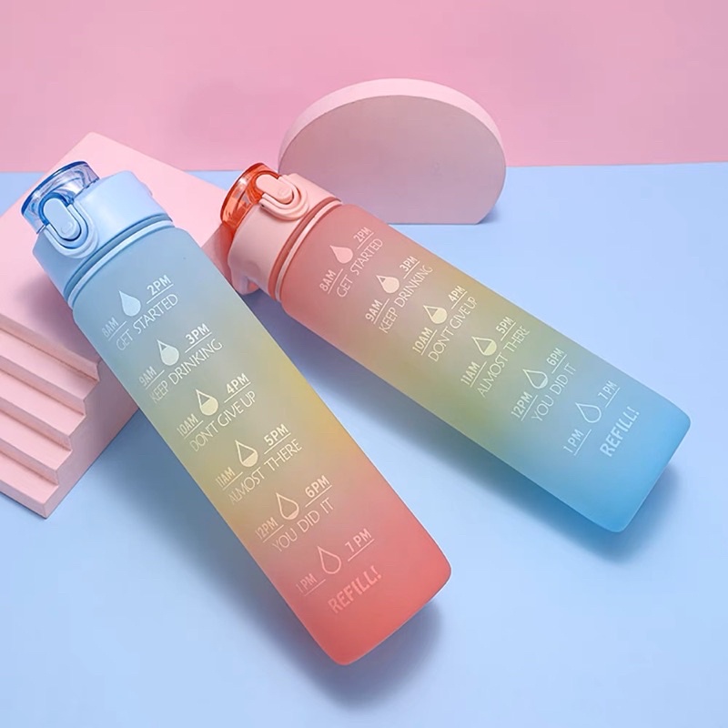 Botol minum viral hits di amazon dipakai artis-artis sekarang ready di Indonesia. Pastikan kebutuhan air kamu sehari-hari sudah tercukupi dengan minum air setidaknya 2L. Dengan penanda waktu di botol yang mengingatkan untuk terus mecukupi kebutuhan harian air putih untuk kesehatan badan.