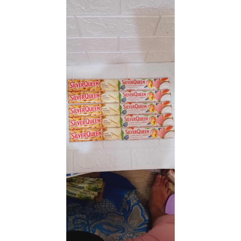 Cokelat Silverqueen 58g 1 box 1 box isi 10 ada 5 Variant Rasa Cokelat Silverqueen yang khas guruh dan enak susu di pdikan dengan kacang pilihan ada Almond dan Mede