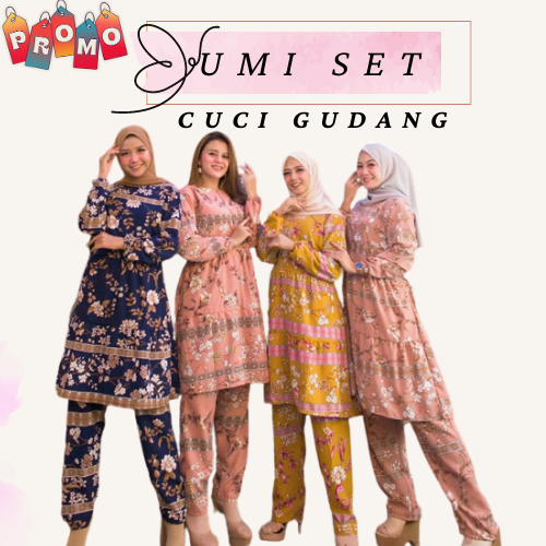PROMO CUCI GUDANG !! SETELAN WANITA UMI SET BAHAN MONALISA CORAK LD 102 CM SETELAN WANITA KEKINIAN FASHION MUSLIM / ONE SET WANITA KORENA STYLE / SET BAJU MUSLIM MODERN / SETELAN WANITA TERBARU 2023 KEKINIAN