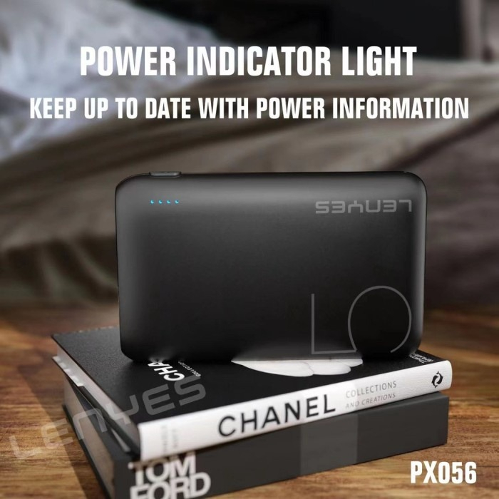 Power bank lenyes PX-056 5000mah mini-portable power bank -Battery capasity :5000 mah -input port: DC5V-2.04 MAX -Produk Weght: max 104g -produk size 61X99.5X15.3MM