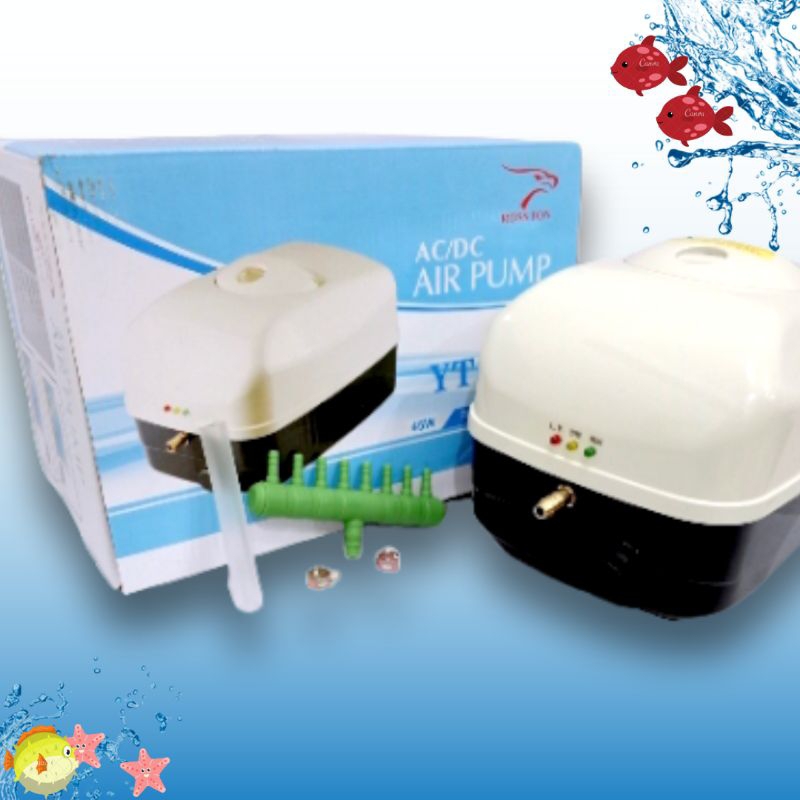 Keuntungan utama kompresor dari yamano adalah pengisian daya, yang tidak diperlukan kabel dan konektor tambahan, pengisian dilakukan terus menerus selama pengoperasian perangkat. Perancangan perangkat ini membantu menyederhanakan dan membuatnya lebih dapat diandalkan. Pada kasus ada 3 indikator yang menunjukkan status perangkat. Lampu merah menunjukkan pengoperasian stopkontak AC, biru mengindikasikan pengisian baterai, operasi hijau dari baterai. Berkat penggunaan kompresor, Anda tidak perlu khawatir dengan kehidupan ikan, bahkan pada saat transportasi yang lama atau saat listrik terputus. 8cabang output
