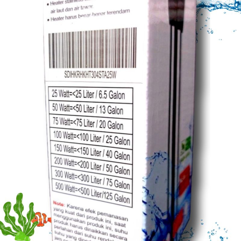 Merk : HIKARI Tipe : HK-HT-304-STA-25W Daya : 25watt Material : STAINLESS Panjang Heater : 21,5cm