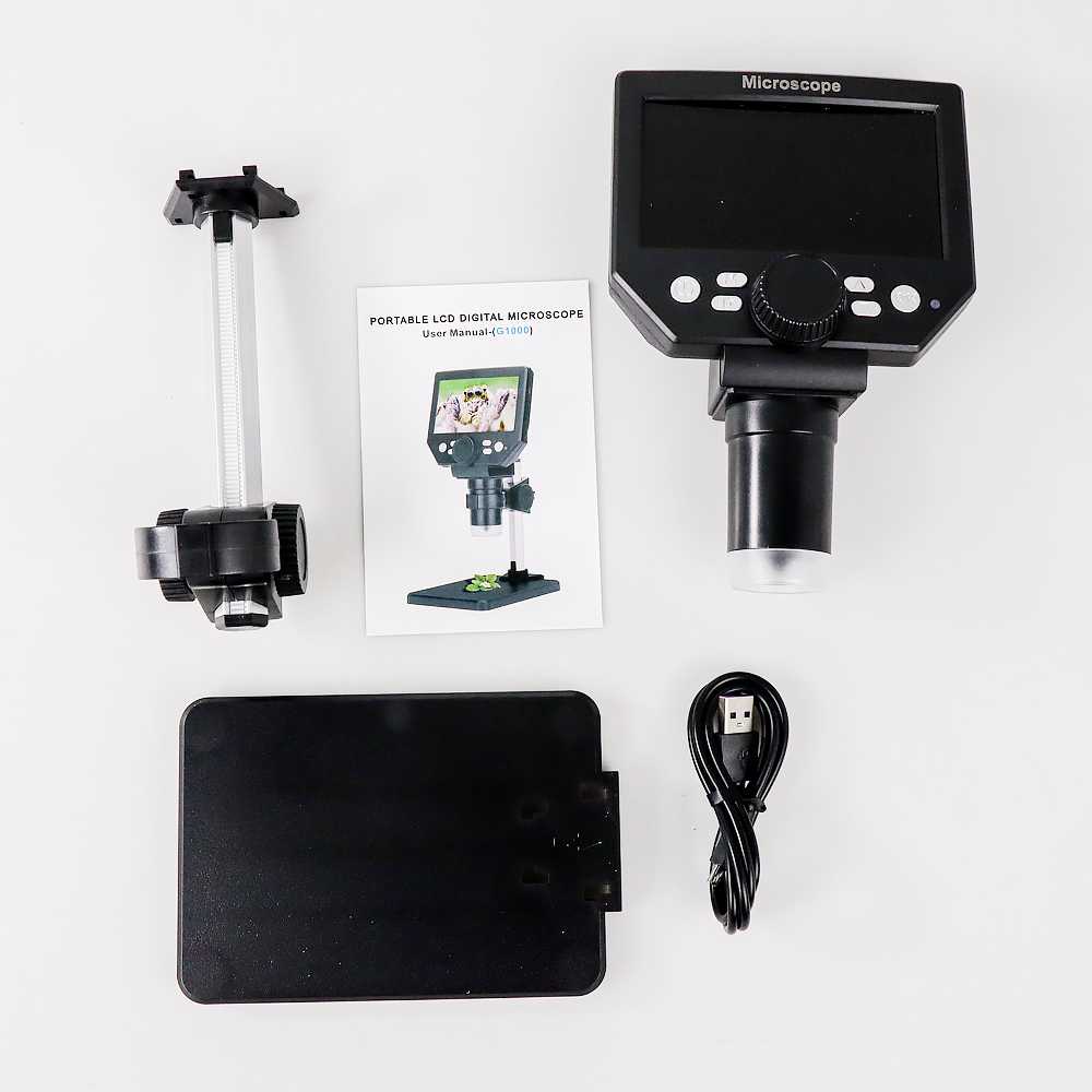 Ini merupakan mikroskop canggih yang biasanya hanya ada di lab-lab saja. Namun kini, Anda bisa memilikinya di rumah. Mikroskop dibekali monitor yang dapat menampilkan hasil pembesaran objek dari lensa kameranya. Mikroskop ini memiliki pembesaran hingga 1000x, sehingga bisa digunakan untuk service barang-barang mini, seperti smartphone, jam tangan, batu mulia, perhiasan, ataupun melakukan penyolderan