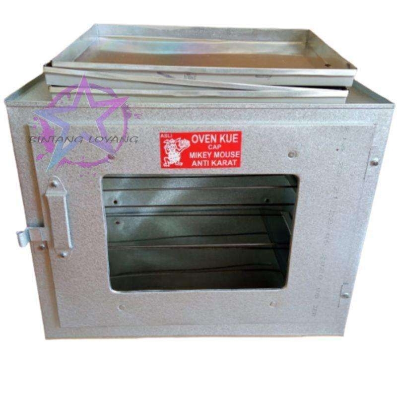 paket lengkap oven Miky 3 susun bahan galvalum ukuran luar 35x27x25 cm. maksimal untuk kapasitas loyang maksimal ukuran panjang 28 cm dan diameter atau lebar maksimal 24 cm.