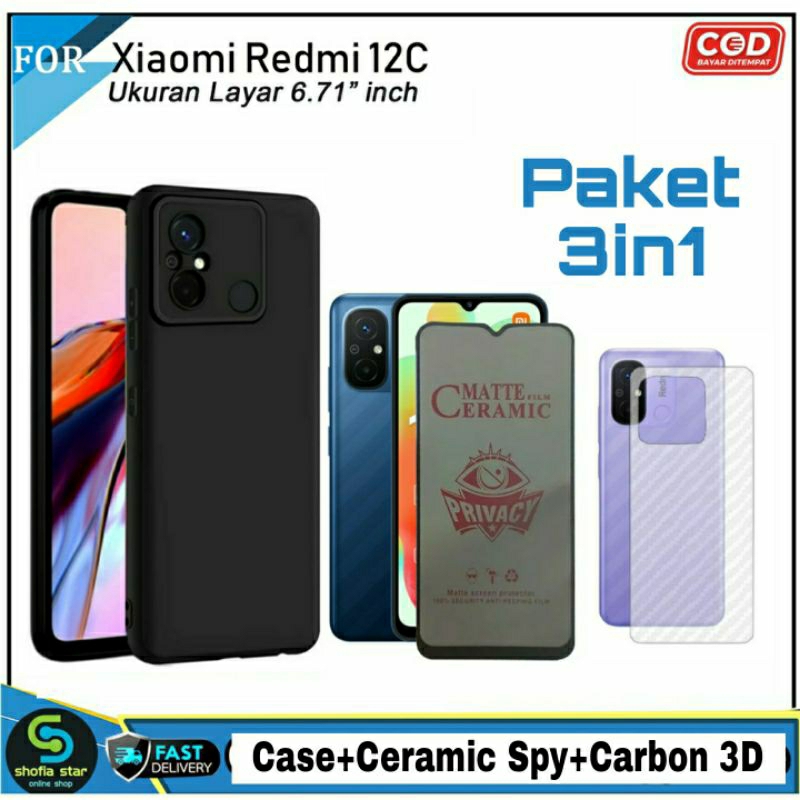 Promo Paket 3in1 Case Redmi 12C soft case Pro Macaron Casing