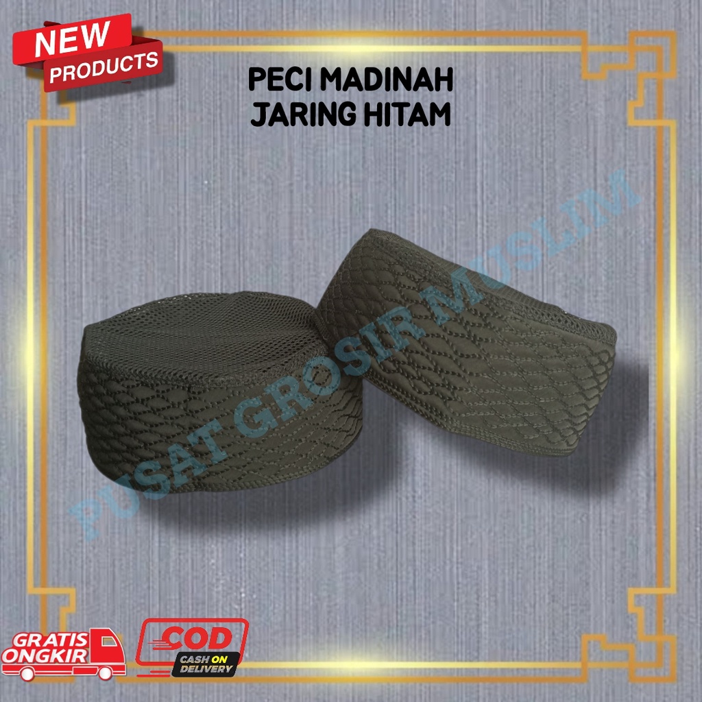 Detail Promo Peci Madinah Ikaf Jaring Dewasa Hitam Tinggi 6 CM/ Peci Madinah Jaring Hitam