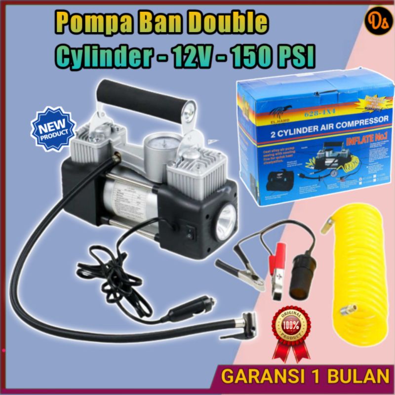 Video perkenalan produk PROMO Pompa Ban Compressor Double Cylinder 12V 150 PSI - 628-4X4 OTOHEROES OMRSE7BK. Sumber: Shopee.