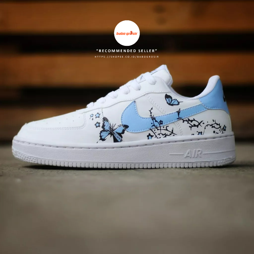 Tunggu apalagi?? Pesan sekarang dan PROMO Sepatu Sneakers Wanita Nike Air Force 1 Low White Blue Butterfly PREMIUM QUALITY dengan Harga Termurah disini di BaboGrosir