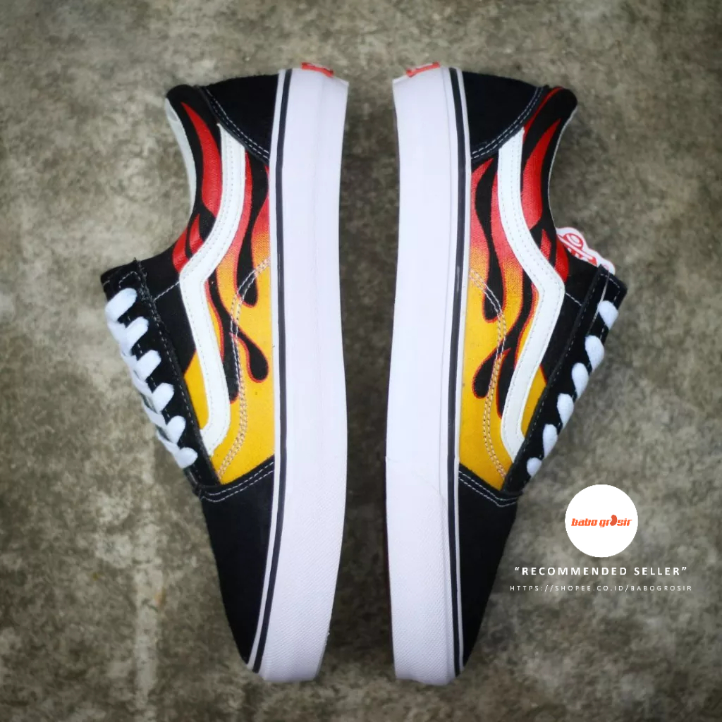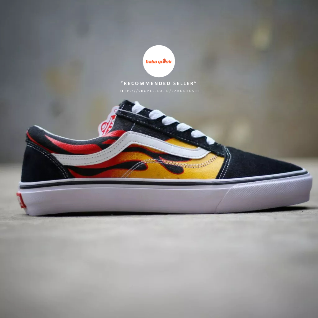 PROMO Sepatu Vans Oldskool Flame Red (Api Merah), Upper Kanvas, Kulit Suede, Sol Waffle DT Anti Slip, Premium Import Quality Tag Made in China dengan Harga Termurah disini di BaboGrosir