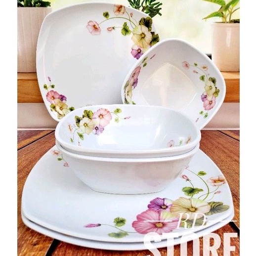 PROMO SET 6.PCS / ISI 3.PIRING & 3.MANGKOK MOTIF ROSE MELAMINE