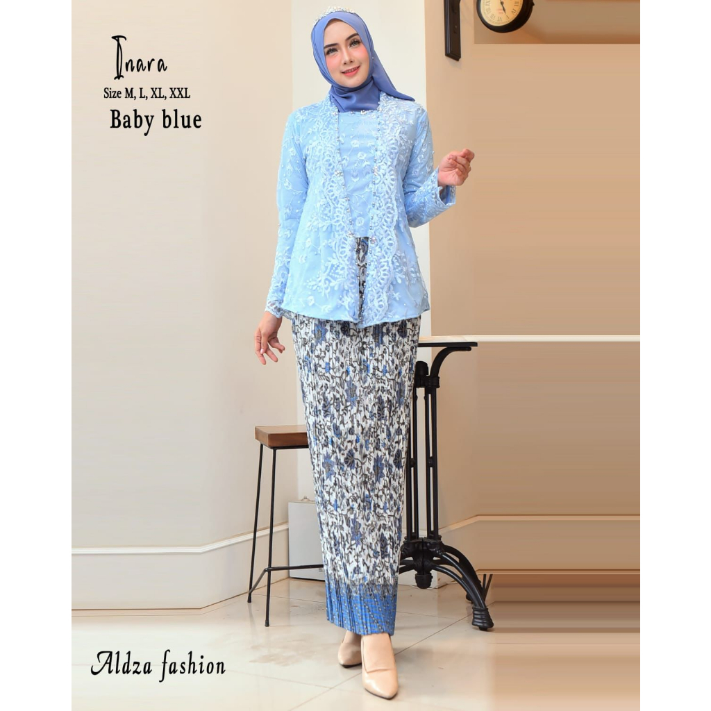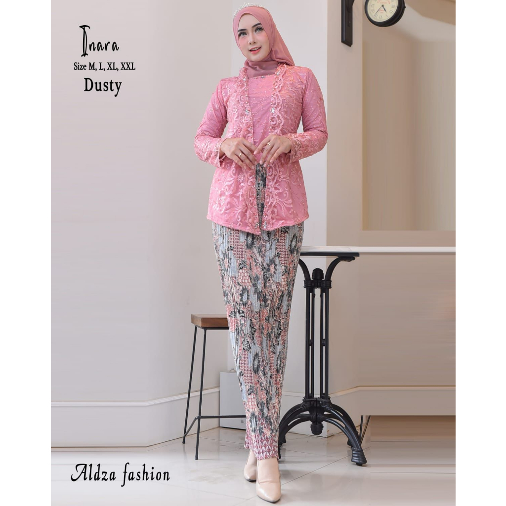 PROMO Set Kebaya Kutu Baru Modern Hijab / Kebaya Kutubaru Brokat Tile / Kebaya Kutubaru Remaja Bordir Set Rok Plisket Panjang Inara