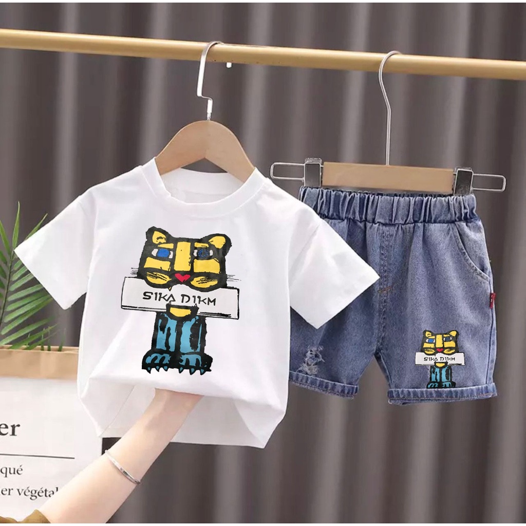 PROMO-SETELAN ANAK JEANS DENIM 1-5 TAHUN SETELAN ANAK LAKI LAKI BAJU ANAK LAKI LAKI KAOS ANAK CELANA DENIM SETELAN SKADIM