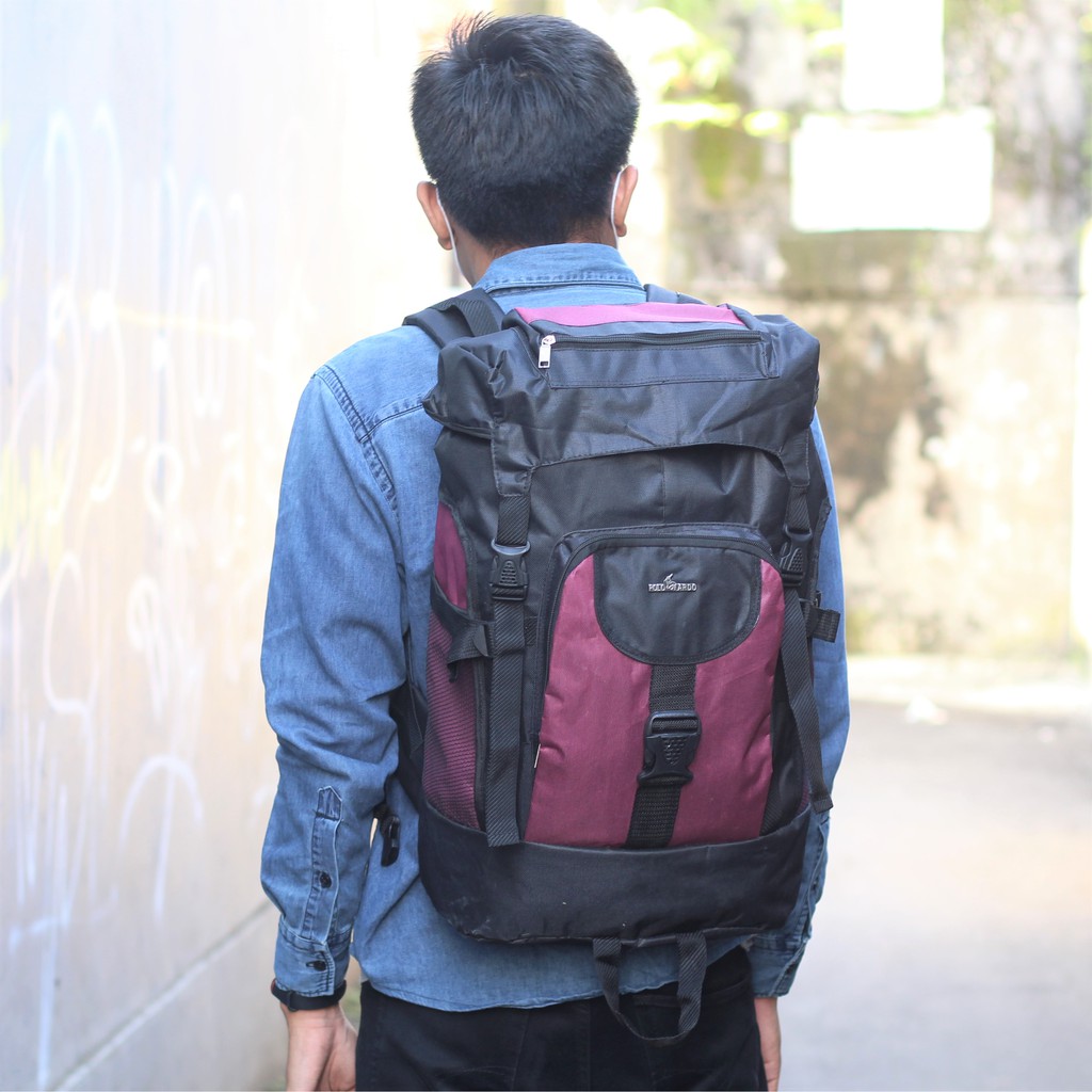 Detail : - Ukuran 29x15x49 cm - Bahan D300 - 1 Ruang Resleting Utama + 1 Saku Kanan Kiri + 1 Resleting Depan + 1 Ruang Bagian Atas - Nyaman di punggung, bagian punggung juga di lapisi busa/emboss - Cocok untuk hiking, travelling, outdoor dll