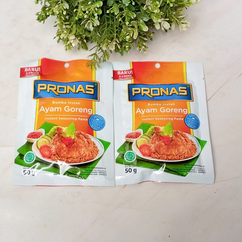 Pronas Bumbu Instan 50gr Pronas Bumbu Instan membuat memasak jadi lebih mudah salah sau nya Bumbu instan ayam goreng dengan rempah-rempah seperti kunyit, bawang Merah, bawang putih, ketumbar. lengkuas, penyedap, minyak kelapa, merica Semua bumbu yang dibuat seperti racikan ulek di rumah nih, untuk rasa yang Tidak kalang enak dengan bumbu dapur rahasia kita dirumah. Dengan pronas bumbu instan sangat membu kita dalam memasak, masak Jadi lebih cepat, praktis dan pasti nya enak banget...