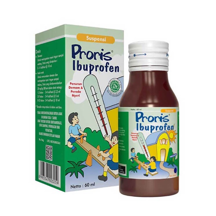 PRORIS SIRUP 60 ML merupakan obat dengan kandungan Ibuprofen 100 mg tiap 5 ml.