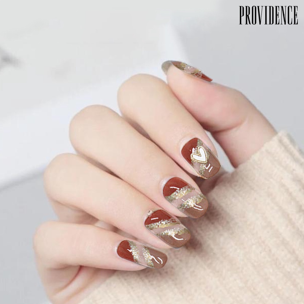 Providence 1set Kuku Palsu Mengkilap Penuh Penutup DIY Mempesona Efek Visual Musim Gugur Musim Dingin Caramel Coklat Jantung Buatan Kuku Nail Salon Pasokan